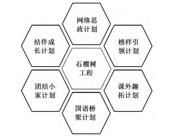 石榴树工程以《关于加强和改进新形势下高校思想政治工作的意见》为指导,努力践行全员全过程全方位育人的目标。其一,多渠道动员育人力量,促进民族团结进步教育协同发力。以学工干部、专业教师、学生党员和学生干部甚至普通学生为教育的组织、传导节点,共同形成民族团结进步教育的校园网络。其二,将以课程为主的显性教育与以课外教育活动为主的隐形教育相结合,辅之以校园氛围与文化环境塑造,实现民族团结进步教育“全程在线”,涵盖从新生入学教育到毕业离校教育的全过程。其三,将民族团结进步教育与少数民族学生服务管理相结合,推进全方位育人。以“严、爱、细”为指导思想,策在管理,重在服务,意在教育。