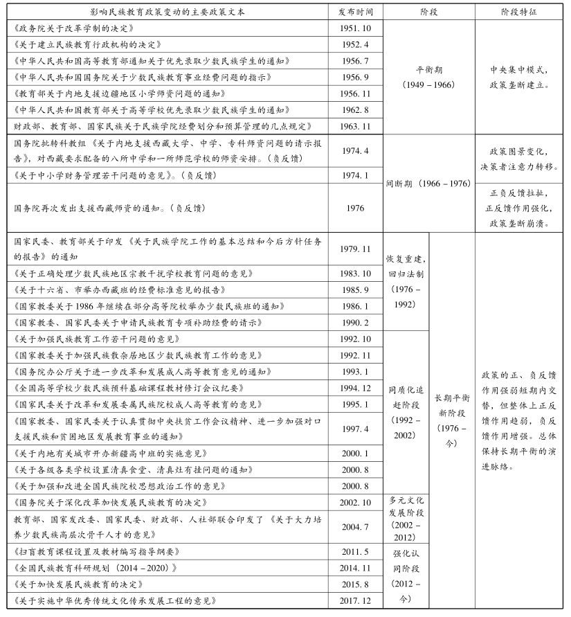 表1 中国民族教育政策的历史变迁(1949-2019)