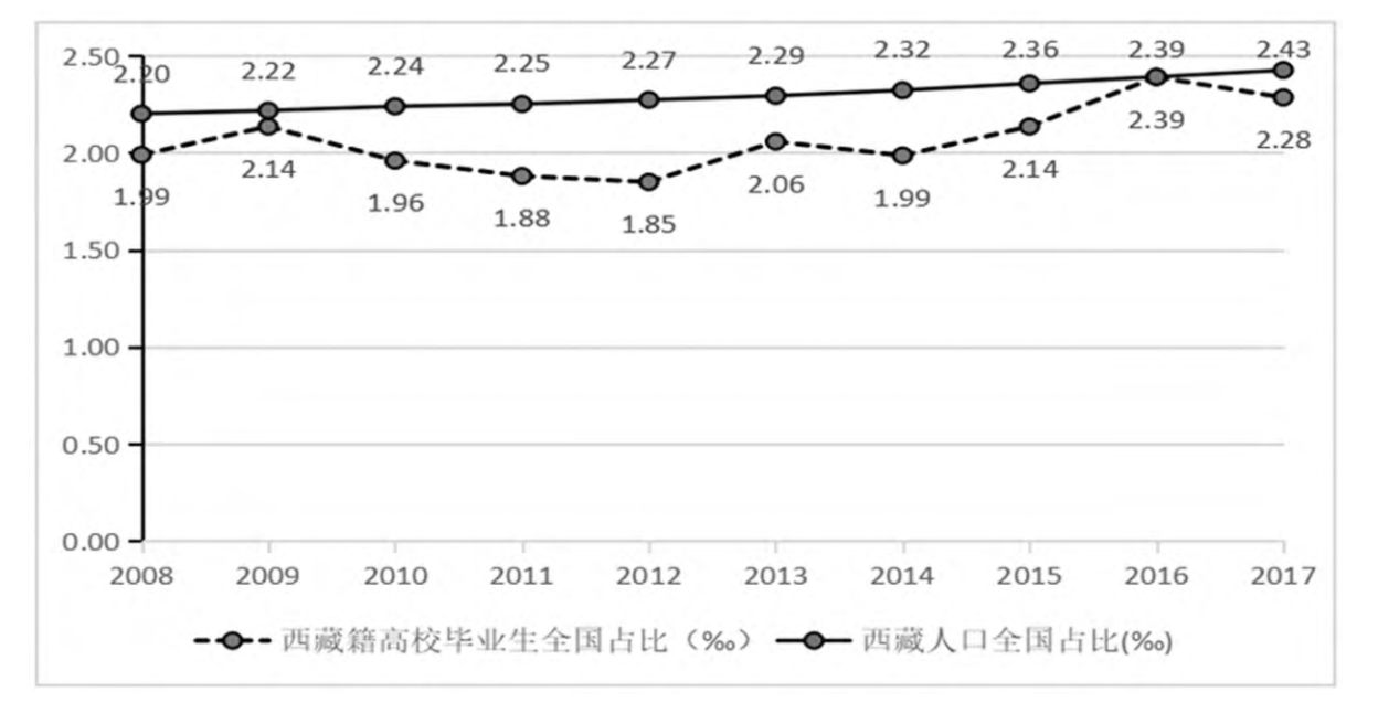图3西藏籍高校毕业生全国占比与西藏人口全国占比的比较②