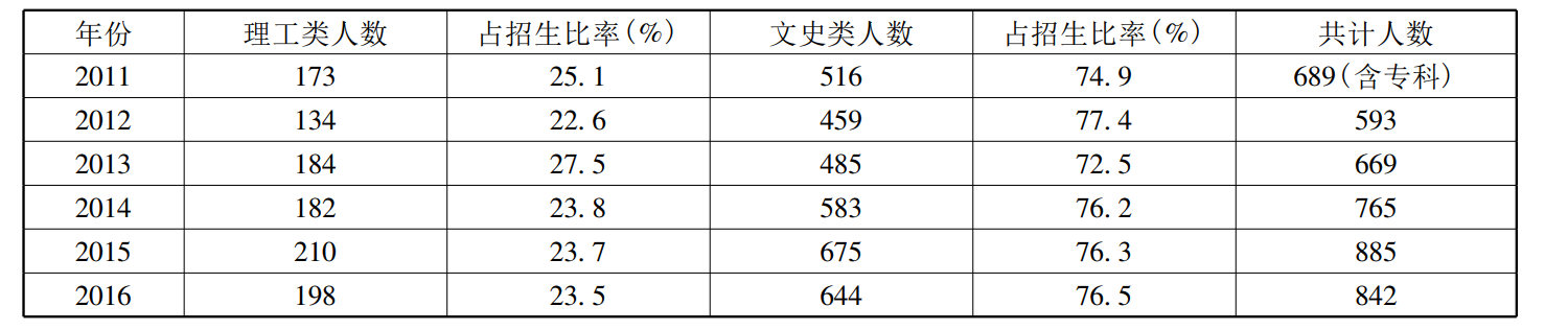 表1 民族类高校招收甘肃省藏族学生文理科人数统计(2011—2016)