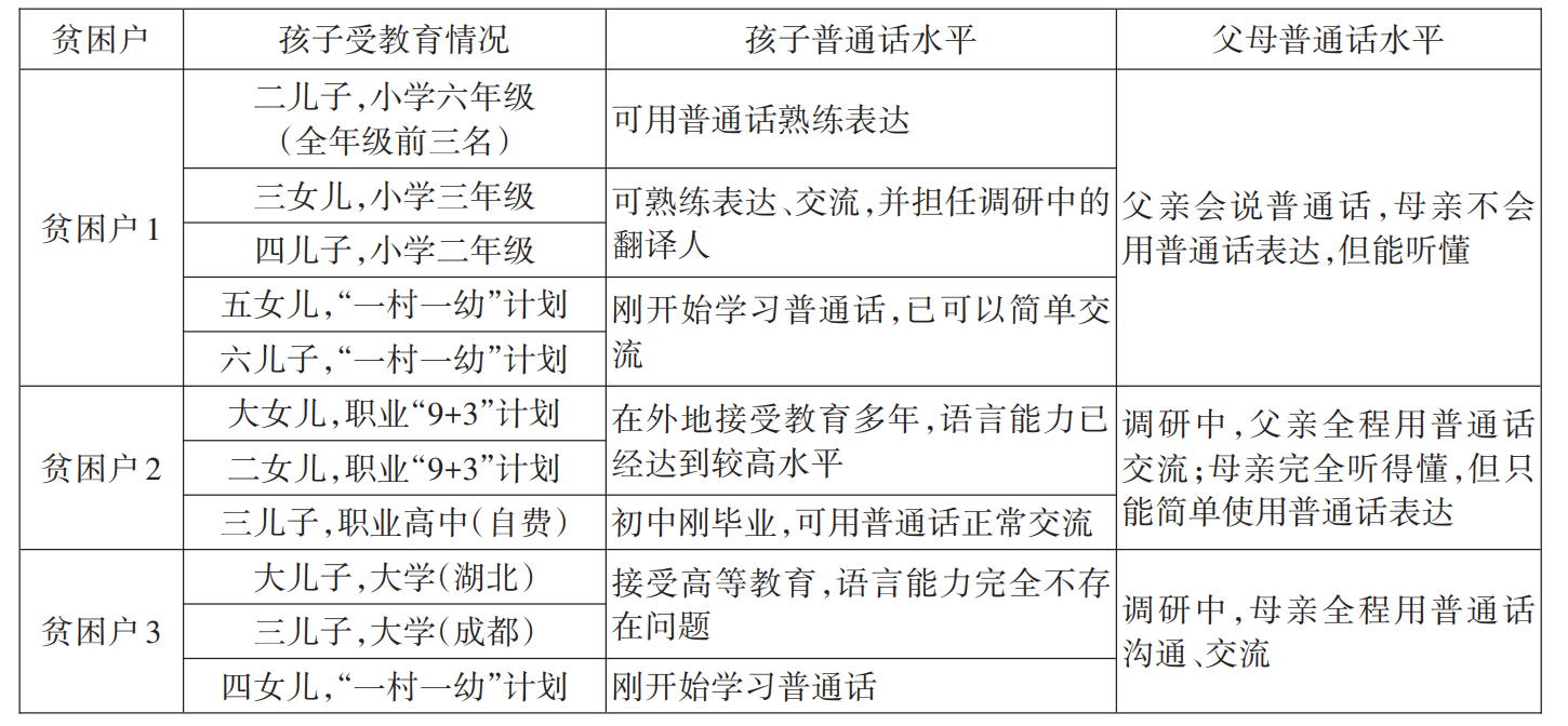 三是为学龄前儿童免费提供的幼儿活动场所和国家通用语言文字培训,解决了深度贫困民族地区学龄儿童在学习中面临的语言文字障碍,提升了贫困儿童的语言能力和知识技能,阻断了贫困的代际传递;并且,在家庭教育强化的背景下,学龄前儿童对国家通用语言文字的学习能激发家长学习国家通用语言文字,提升其获得并分析外界信息的能力,从而推动所有贫困家庭提升知识技能、转变思想意识,解决区域性整体贫困问题,推动深度贫困民族地区跨越贫困陷阱。