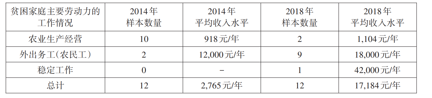 表1 凉山州喜德县尼觉村受访贫困户主要劳动力从事的行业及收入变化状况①