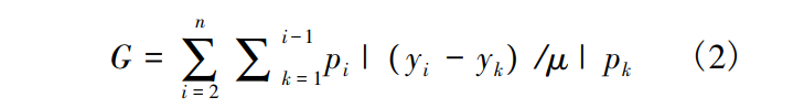2.教育基尼系数。教育基尼系数是在测量收入分配差异的基尼系数基础之上发展起来的,它的取值范围在[0,1]之间。基尼系数越大,表明教育发展越不平等。计算公式为: