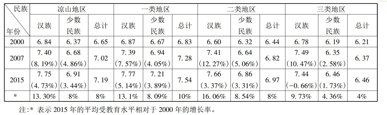 表1 凉山地区汉族/ 少数民族的平均受教育年限