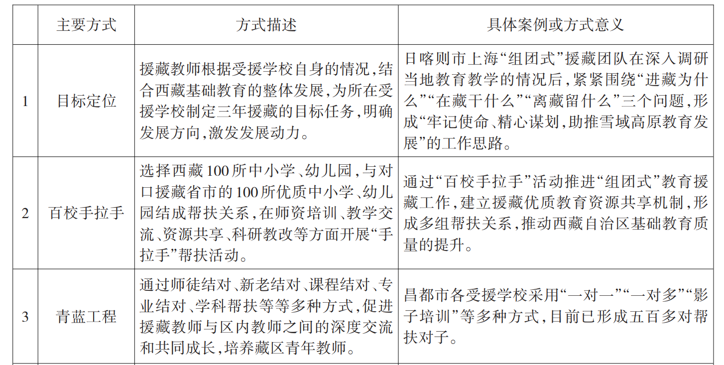 表3 “组团式”教育人才援藏实现的主要方式