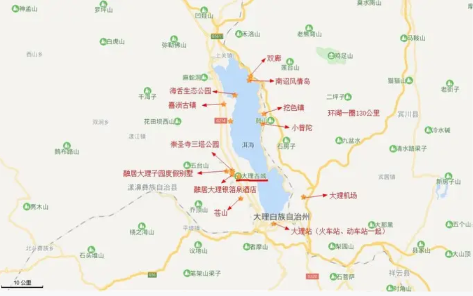 喜洲镇位于大理市北部,东抵洱海岸边,西依点苍山,南隔鸡鸣江,与湾桥相连,北以龙首关为界,与洱源县接壤。