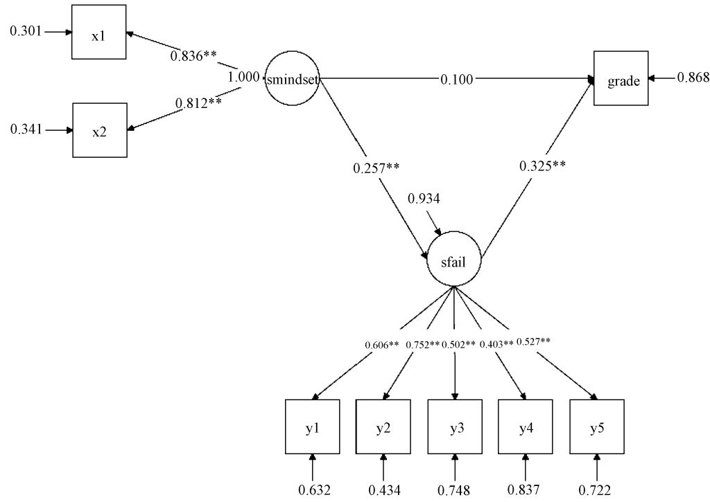 ②pmindset表示父母思维模式,smindset表示学生思维模式,sfail表示学生对失败的认知。