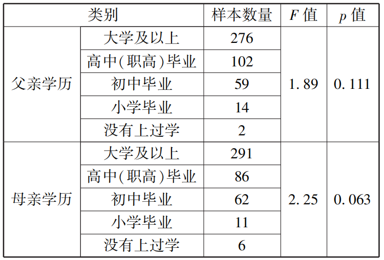 注:其中父亲学历缺失13人,母亲学历缺失10人