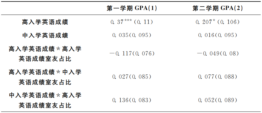 注:所有回归都控制了民族、政治面貌、困难生和宿舍规模,并加入了省份、宿舍楼栋和专业固定效应;括号内数值为标准误;*、**和***分别表示10%、5%和1%的统计显著性水平。