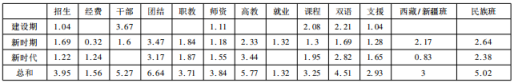 表2 民族教育政策“差异性”关键词的加权百分比