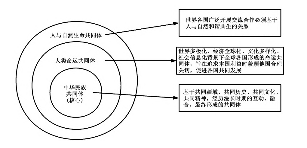 马克思和恩格斯认为,共同体包含“自然共同体”、以资本主义国家为代表的“虚幻共同体”以及作为“自由人联合体”的“真正共同体”,而“真正共同体”是人类最终的追求[3]。习近平总书记提出的“共同体理念”正是对马克思恩格斯经典共同体理论的继承和发展,丰富和深化了中国共产党对人类社会发展规律的认识,其内涵主要包括“中华民族共同体”“人类命运共同体”和“人与自然生命共同体”三个层面。我们要以铸牢中华民族共同体意识凝聚起强大发展合力,推动中华民族走向包容性更强、凝聚力更大的民族大家庭和命运共同体。与此同时,以习近平同志为核心的党中央始终秉承胸怀天下的世界情怀,既要为中国人民谋幸福、为中华民族谋复兴,也要为人类谋进步、为世界谋大同。因此,在探索中华民族特色教育理论的过程中,不仅要强化铸牢中华民族共同体意识教育,同时要补充人类命运共同体和人与自然生命共同体的教育内容,使我们培养出的中华民族成员既能以实现中华民族伟大复兴为己任,又能够积极努力为世界和平发展、人类社会进步事业贡献力量。