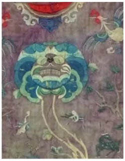 紫色作为曾经的主要色彩在1950-1970年背带中还是出现的比较多(见图8),到了1980年后(见图9),已经不是图案的主要色彩了,到了近几年(见图10),紫色作为辅助色都比较少地出现。1950前的色彩搭配主次分明,有底色、图案主色、搭配色、点睛色,总体色调协调统一,秀美、雅致,呈现协调统一的美感。之后的刺绣图案没有主色,底色的红色抢走了刺绣图案上的各种颜色,而刺绣上各个色彩之间的运用比较均衡,分不出主次和基调,刺绣图案在视觉上已经隐入到底色中,图案的形式模糊。