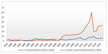 图4 1978—2022年中央和地方政府所发布的民族教育政策数量