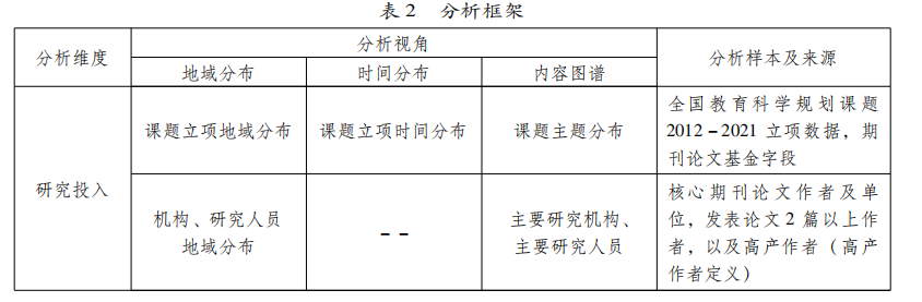 按照教育研究的生命周期,我们可从投入、产出、影响等三个维度对我国的民族教育研究进行分析,分析框架如表2所示。