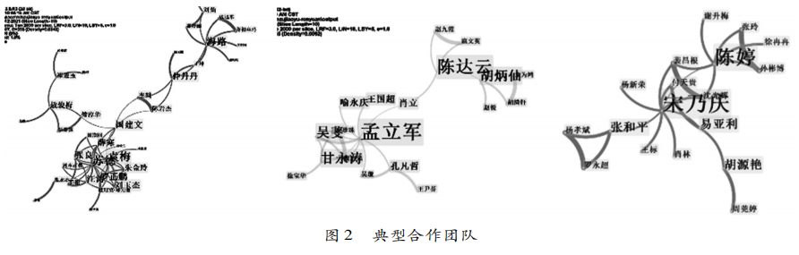 上述研究人员组建有规模不同的研究团队,通过CiteSpace绘制的作者合作网络及其数据可以发现,规模较大且合作关系相对稳定的团队有三个,如图2所示。一是由中央民族大学苏德、袁梅、海路等学者组成的研究团队,二是由中南民族大学孟立军、陈达云等学者组成的研究团队,三是由best365英国体育在线宋乃庆、陈婷等学者组成的研究团队。数据表明,除了这三个团队的成员之外,还有大量相对高产的作者缺乏稳定可持续的研究团队,从后文论文作者合著情况计算出来的合著指数(1.72,即篇均作者数为1.72个)、合著率(0.48,即合著论文占全部论文的比率是0.48)等偏低。这表明民族教育研究的学术共同体还有待进一步建设,相关学科的学位点建设有待增强,民族教育研究方向的研究生培养规模有待提升。
