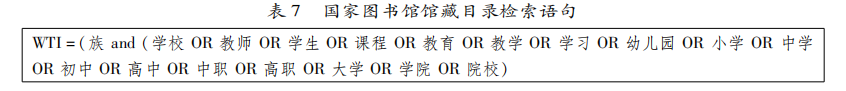 通过查询国家图书馆馆藏目录,检索语句如表7所示,检索时间限定为2012年至2021年,文献类型为图书,检索时间为4月10日,得到3700余条记录。