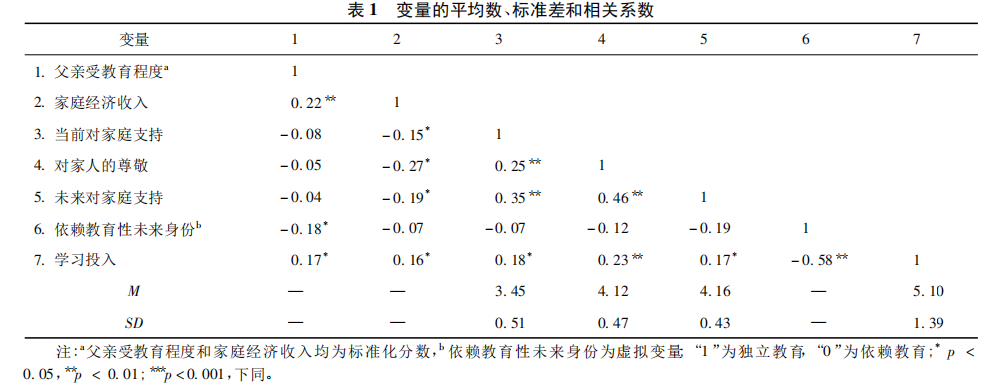 关键词:家庭经济收入;家庭义务感;依赖教育性未来身份;学习投入