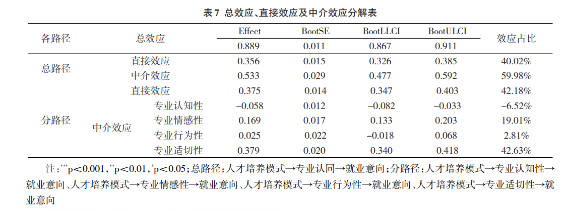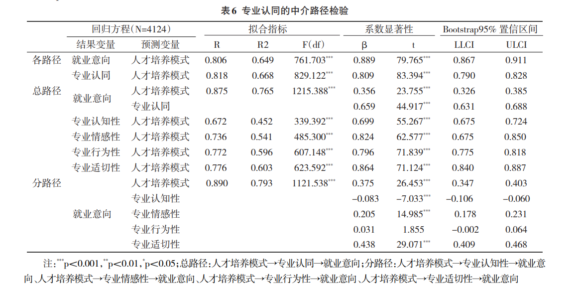(四)人才培养模式对就业意向的影响:专业认同的中介效应