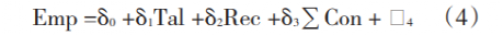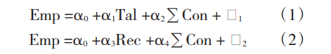 其中,Emp为就业意向,Tal为人才培养模式,Rec为专业认同,Con为控制变量,∑Con为控制变量总和,α0、β0、δ0为常数项,□为随机扰动项。基准模型中,α1、α3显著为检验中介效应的前提。中介模型中,若β1和δ2显著,而δ1不显著,则专业认同为完全中介;若β1、δ1和δ2均显著,且δ1效应量减小,则专业认同为部分中介。