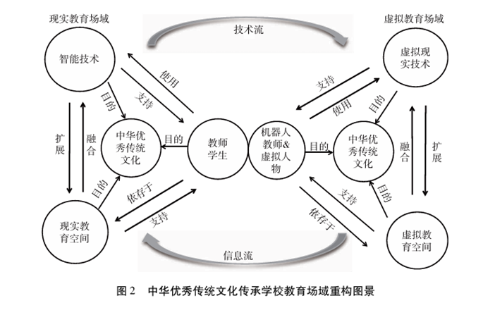 )。同时,在信息流和技术流加持下,民族地区中华优秀传统文化传承的学校教育场域不仅存在于现实生活中,还存在于虚拟场景里,形成虚实结合、多元互动的教育图景(图2