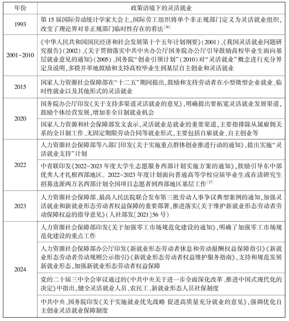 表1 灵活就业相关政策的历史沿革①