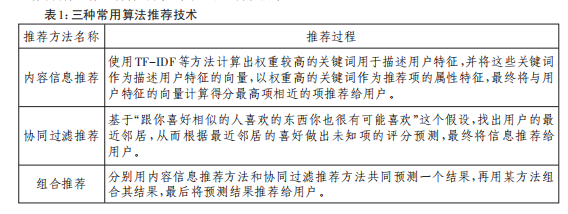 其次,铸牢中华民族共同体意识宣传教育工作的主体不仅要有信息意识,还应具备算法思维。一方面,要深入学习习近平总书记关于加强和改进民族工作的重要思想,夯实铸牢中华民族共同体意识宣传教育的政治基础。另一方面,要掌握基本的算法知识,理解算法逻辑和潜在风险,提高运用计算和数据思维分析解决问题以及防范、对抗算法权力带来的各种风险挑战的能力。与此同时,要充分了解各族群众的信息素养、信息使用习惯、偏好和关注点,不仅要熟悉内容信息推荐算法、协同过滤推荐算法、知识推荐算法、组合推荐算法(见表1),还要深入探究这些算法的运行逻辑,精准把握其工作机制,有效防止算法权力的滥用,科学、合理地开展铸牢中华民族共同体意识宣传教育工作,确保工作既符合时代要求,又贴近群众需求。