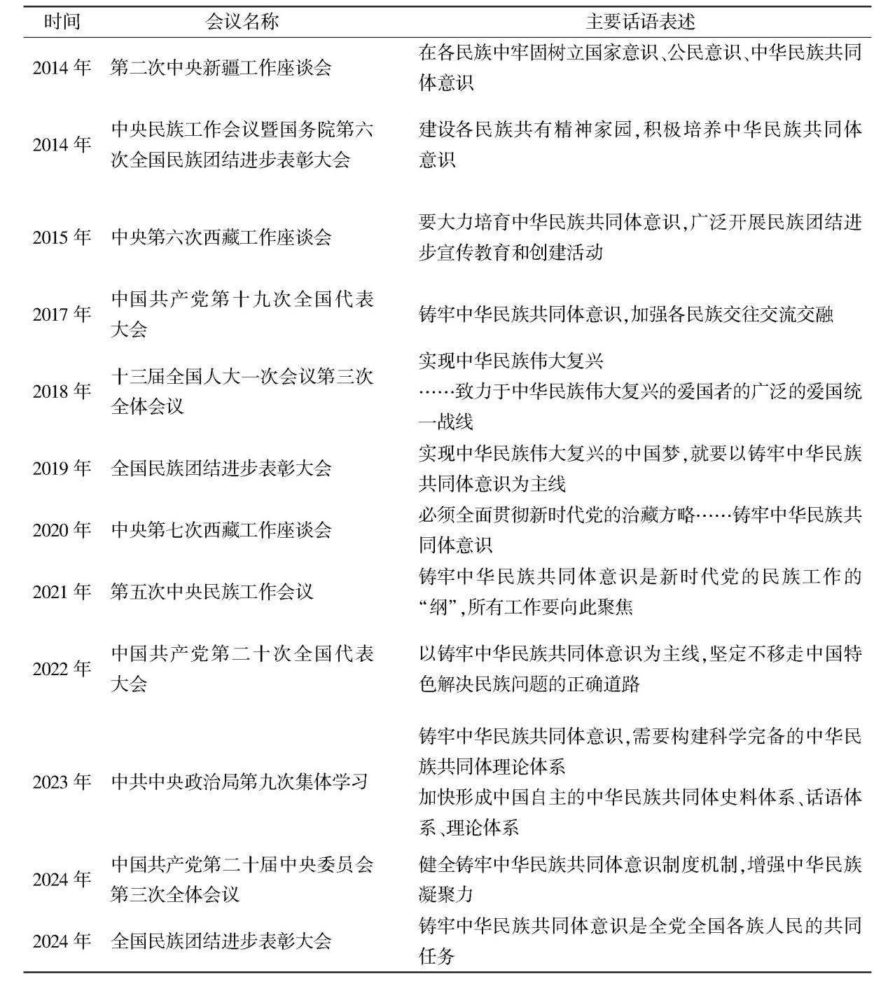 表1 铸牢中华民族共同体意识政策话语生成中的主要话语表述